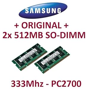 - 2 x 512MB Sodimm DDR (PC-2700 333MHZ CL2.5) - 100% kompatibel zu PC-2100 266Mhz CL2.5