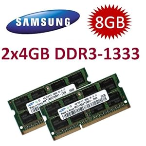 - 2x 4GB = 8GB SODIMM DDR3 (PC3-10600 1333MHZ CL9)